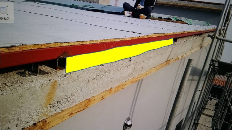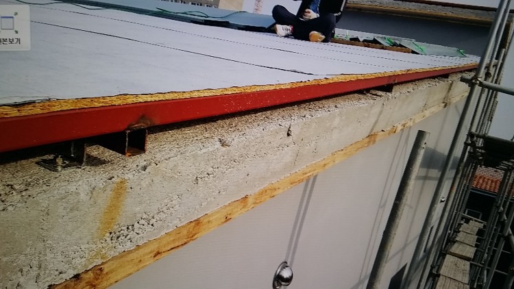 천정슬라브 외부 마감이 첨부 도면처럼 슬라브 위에 방수처리를 하고