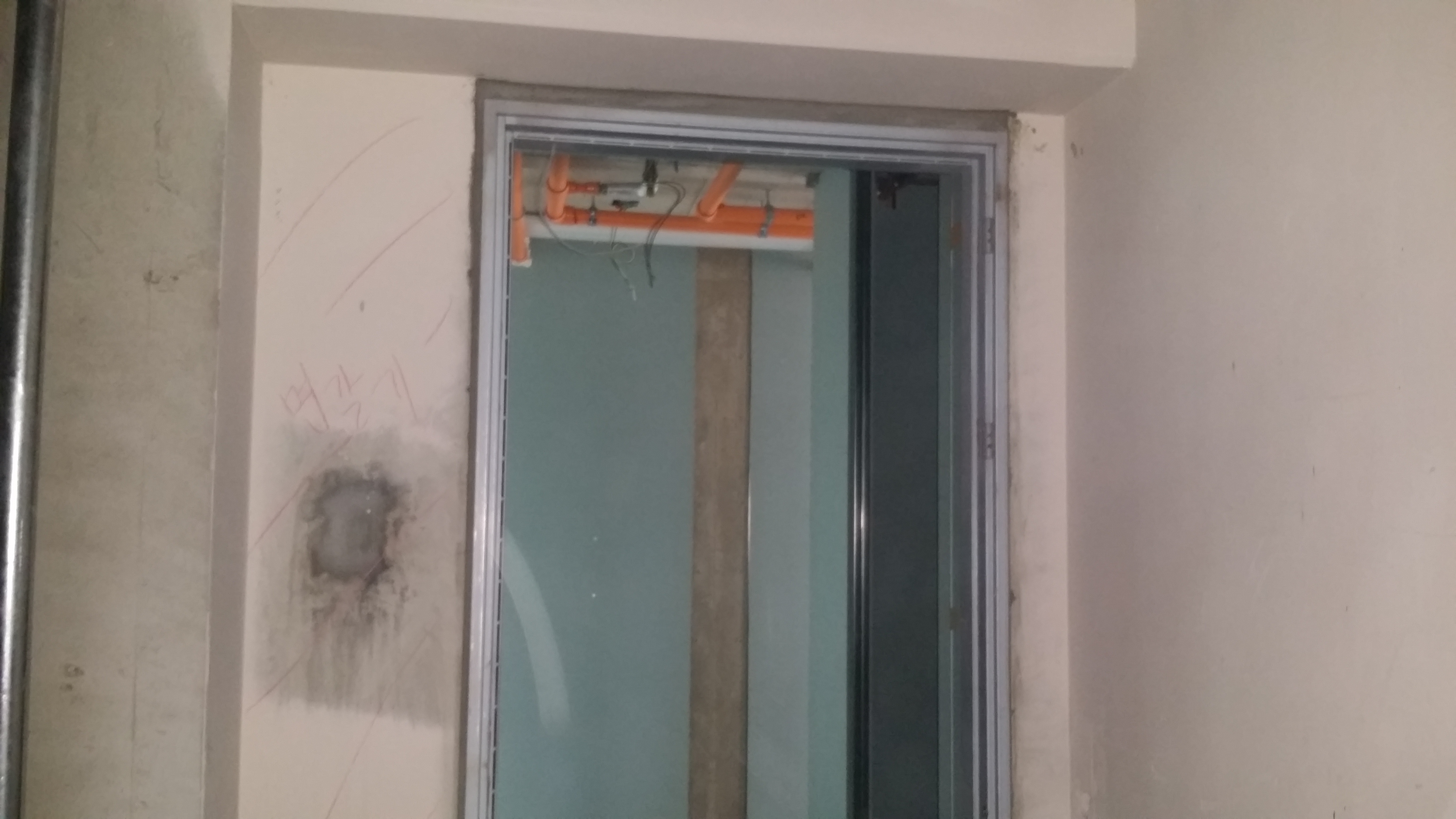 콘크리트 개구부에 문틀을 용접하혀 고정 설치하고, 문틀과 콘크리트 사이 틈은 시멘트 모르타르에 의해 사춤한 것입니다. 참고하시기 바랍니다.