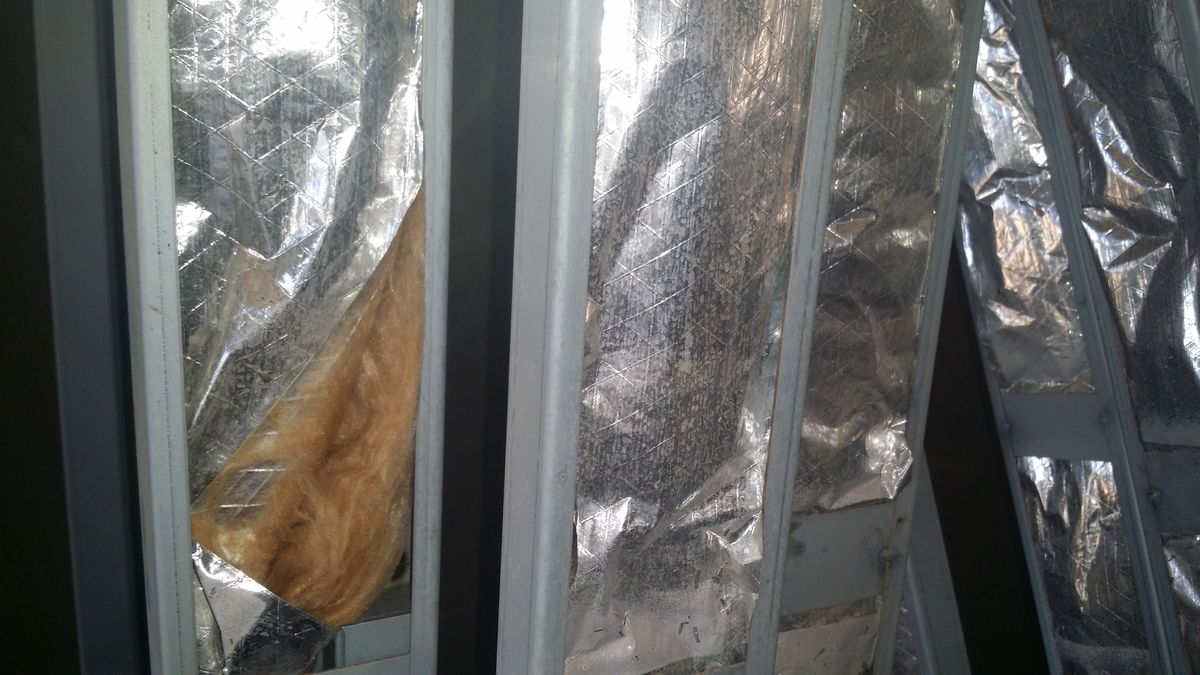 위 사진은 은박에 둘러쌓인 단열재를 방화문틀 틈에 삽입한 것인데, 이를 뜯어서 확인하면 그 안에 유리섬유가 들어 있는 것을 알 수가 있습니다.