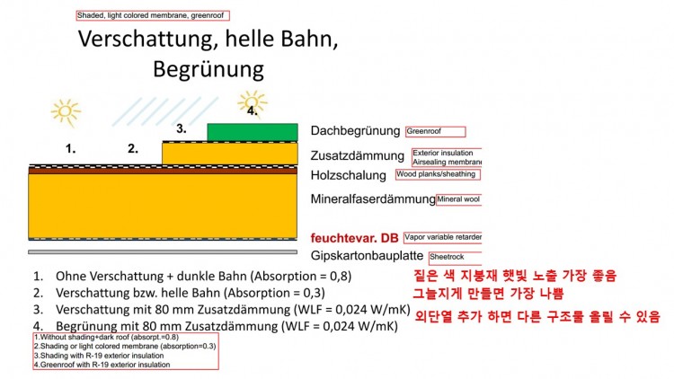 물론 평지붕을 만드는 목적이 옥상 테라스이므로, 나무 deck도 설치 할 예정이니 상기 링크의 자료를 참조하면 추가적으로 외단열도 해야 될 듯 합니다. 물론 내부에 가변형 방습지도 필요하구요.