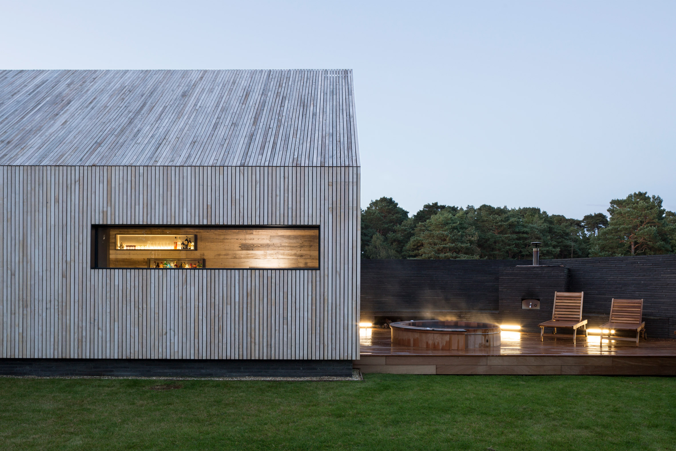 지붕재로 규화처리된 목재를 사용한 집의 사진입니다