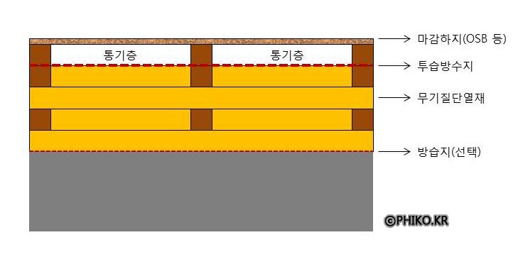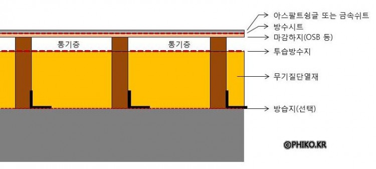 경사지붕 외단열의 대표적인 시공사례로 다음과 같은 그림을 보았는데요