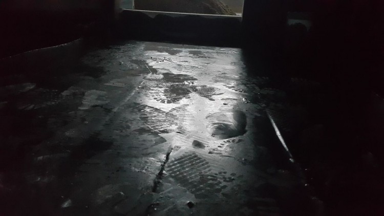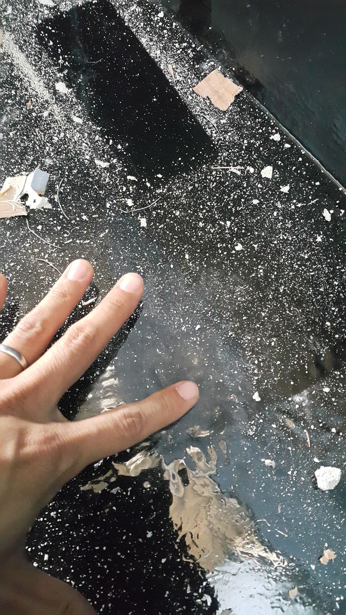 처음 방수액을 발랐을때는 겉은 완전히 경화됬지만 군데군데 공기가 차서 부풀어 올라 그부분만 잘라내고 다시 시공을 했습니다.