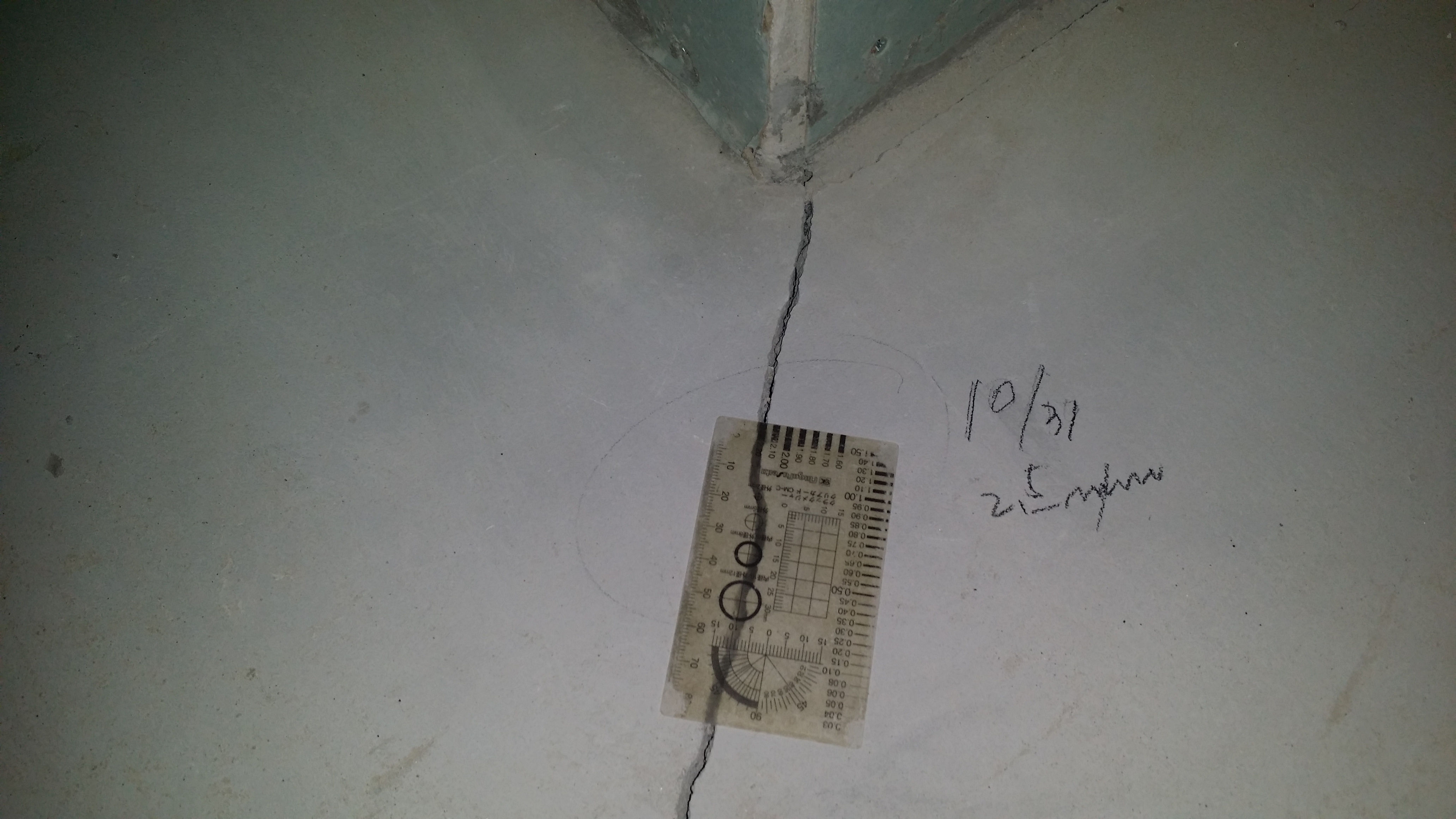 평면이 변화하는 부위인 나온 모서리에서부터 균열이 발생하기 시작하고 있습니다.