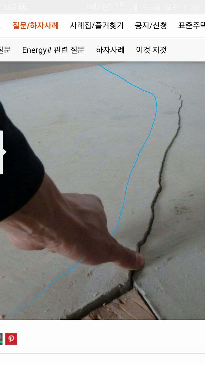 관리자님 말씀대로 크랙간 부분을 밟아 보시면 솟아 오른 부분이 바닥과 밀착되지 않은걸 느끼실 수 있으실겁니다. 그 부분은 철거 후 미장하시는 게 좋습니다.