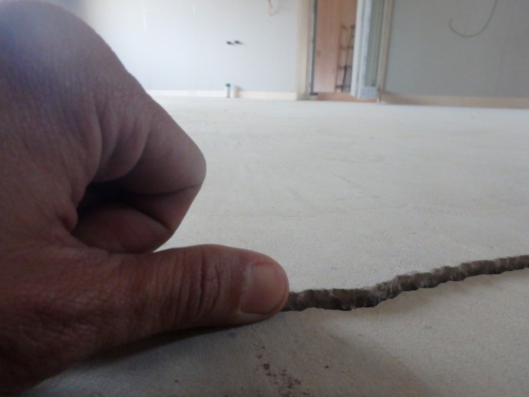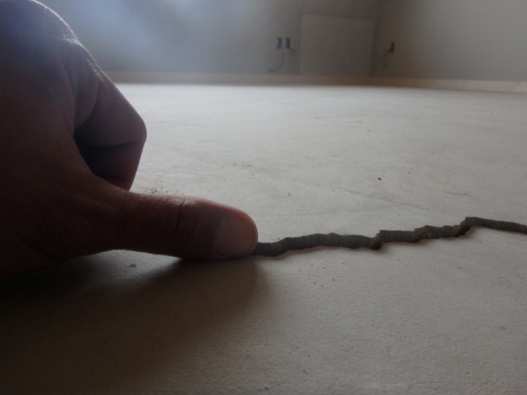 벌어진 크랙은 충분히 이해가 가지만.. (너무 넓은 면적을 조인트없이 한 방에 친 것이 원인) 일부 내려 앉은 현상은 잘 이해가 되지 않습니다.