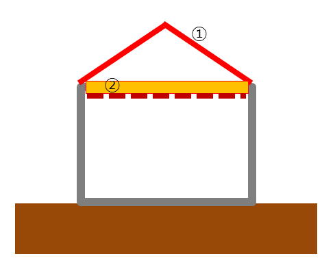 일단, "이중단열"이라는 개념이 존재하려면, 아래와 같은 "내부통기지붕"은 불가능합니다. 지붕속이 외기이기 때문에, 이 상부의 지붕(1)의 단열은 아무 의미없기 때문입니다.