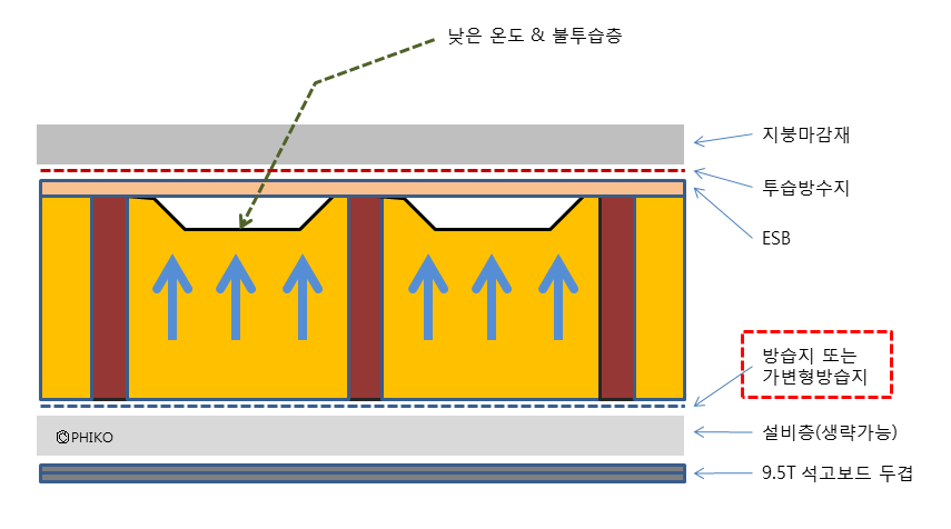 바로 2번 아래에 방습층 또는 가변형방습층이 존재하는가 안하는가 입니다.