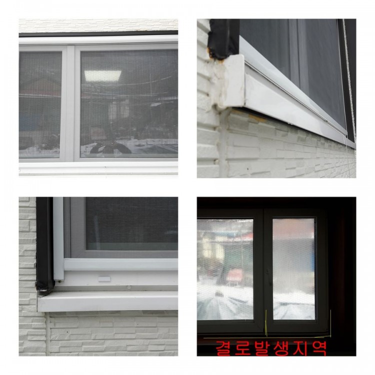 제가 글을 올려 알고자 하는 것은 빗물받이 및 물빠짐 구멍을 통해 단열이 줄어들지 않을까 하는 걱정이며, 이로 인한 열교현상도 심할 듯 합니다. 실내 창틀에서 느껴지는 찬기가 아래가 심하고 결로가 아래 창틀부분을 중심으로 올라간다고 했을 때 추후 실내 나무 창턱이 썩지 않을까 하는 걱정이 생기네요. 실내외 온도 차이와 실내에 있는 사람들의 수나 빨래 건조의 유무에 따라 결로를 피할 수 없다는 것을 알기에 실내 나무창턱 아래에는 방수 스프레이로 방수 처리를 했으나 얼마나 버틸지는 아무도 모르는 것이고, 국내 사정상 벌레 유입방지를 위하여 방충망을 창 밖에 설치할 경우 단열재로 창틀을 덮는 것도 한계가 있었을 듯 합니다. 완성된 외벽을 뜯어 수리하거나 보완하기 보다는 현재 상태에서 벌어질 수 있는 상황이나 사용 중 보완 할 수 있는 것들을 알고 싶습니다. (외벽은 목섬유 300 + 24T 목보드 + 16T캐뮤로 마무리 되었습니다)