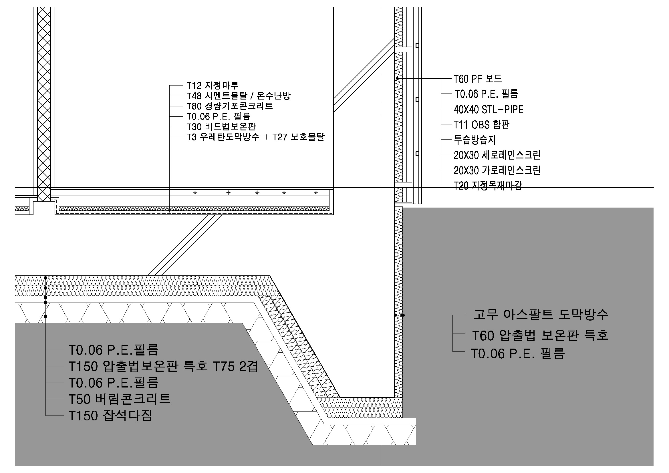 2. 기초 측면의 단열재 두께가 얇습니다. 제주도에서나 가능한 두께이며, 제주도라고 하더라도 이 보다 더 두꺼운 것이 좋습니다.