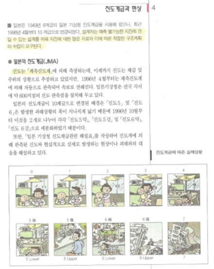 * 위 프린트 한 사진은 일본의 진도 계급을 나타내고 있는데, 우리나라는 미국에서 정한 척도를 기준하고 있음.
