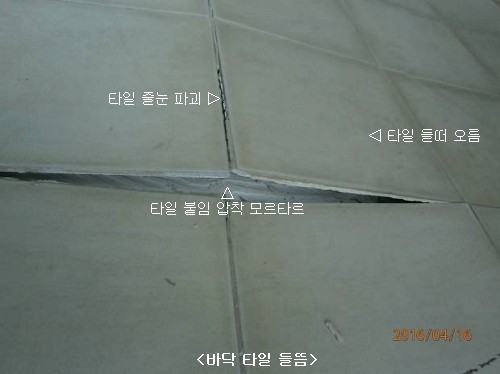 이런 현상은 바닥 타일의 팽창압 때문으로 보여 집니다.