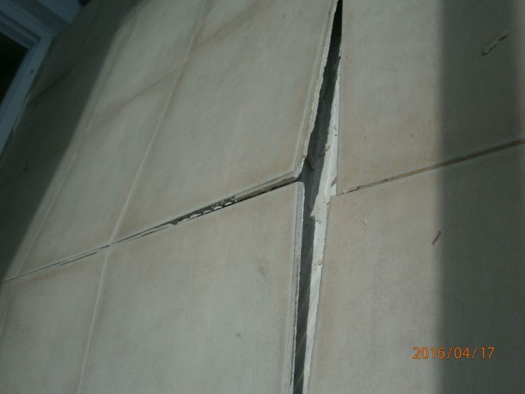 애초 일체화가 아니었으나 접착재인 타일 붙임 모르타르에 의해 바탕과 타일이 하나가 되었지만, 이러한 신축응력의 반복은 취약한 부위에서 타일이 들뜰 수 있을 것입니다.