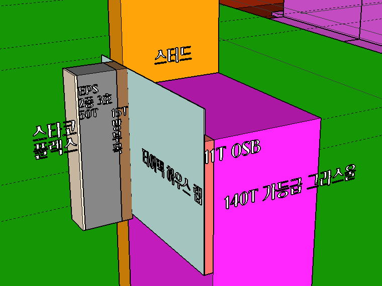 그러므로 협회 표준주택처럼 무기질 외단열을 한다거나, 혹은 드레인랩을 사용하거나, 방수/방습 보드 위에 EPS를 직접 접착하는 방식 등이 있을 수는 있으나, 이를 제가 함부로 언급해서 더 혼란이 있을 수 있기도 하지만 정작 시공을 하시는 분이 경험이 없어 시공을 거부하거나, 한다고 하더라도 좋은 결과로 이어지지 않을 수도 있기에 ... 여기서 벗어나기가 참 어렵습니다.