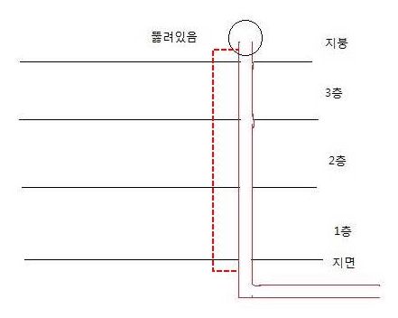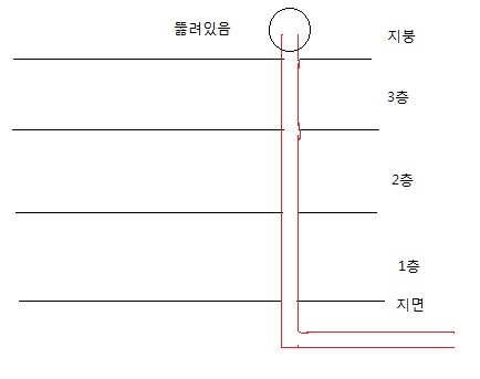 그림 처럼 3층 건물을 예로 든다고 했을 때, 빨간색이 오수/하수 배관이라고 하면,