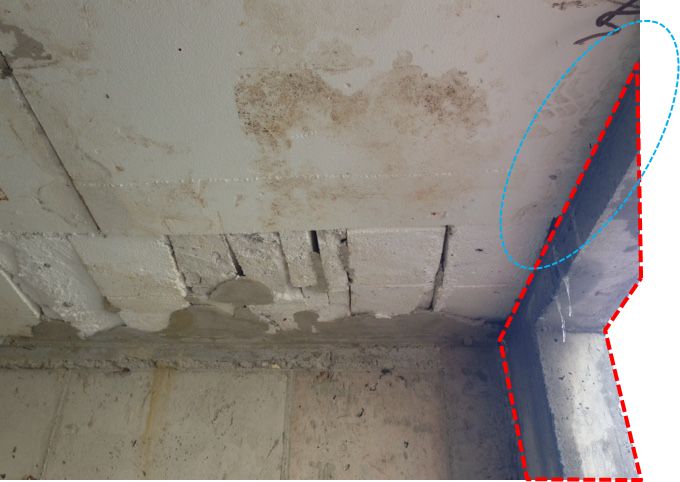 잘 보시면 창가쪽에 고드름낀게 보이실 겁니다 계속 물이 새고 있으며 물이 많이 고인날에는 단열재 짜집기 해놓은 부분에서 다량의 물이 스며나오고 있습니다