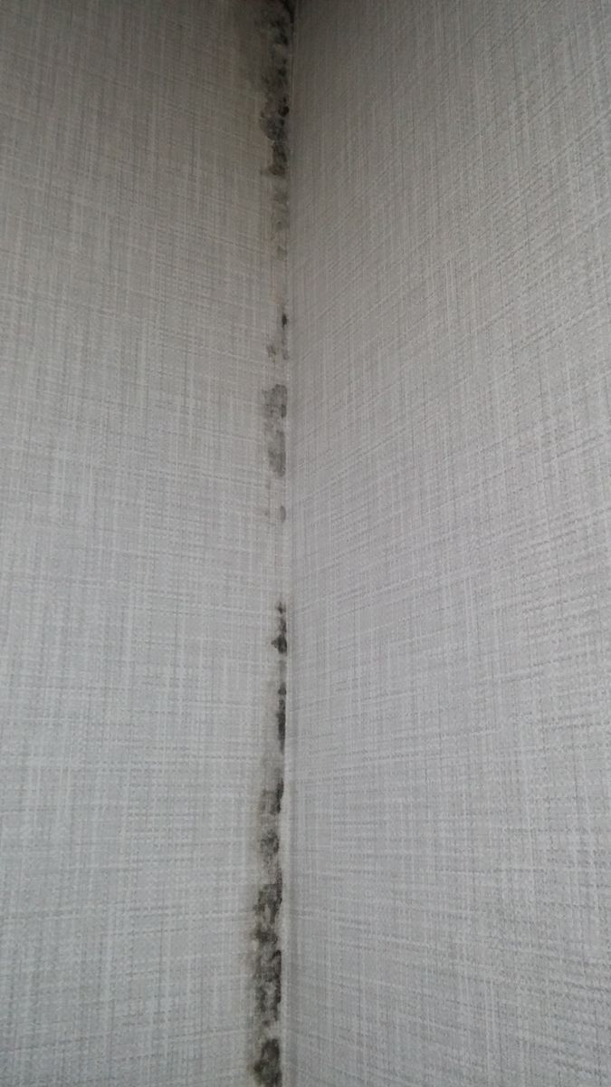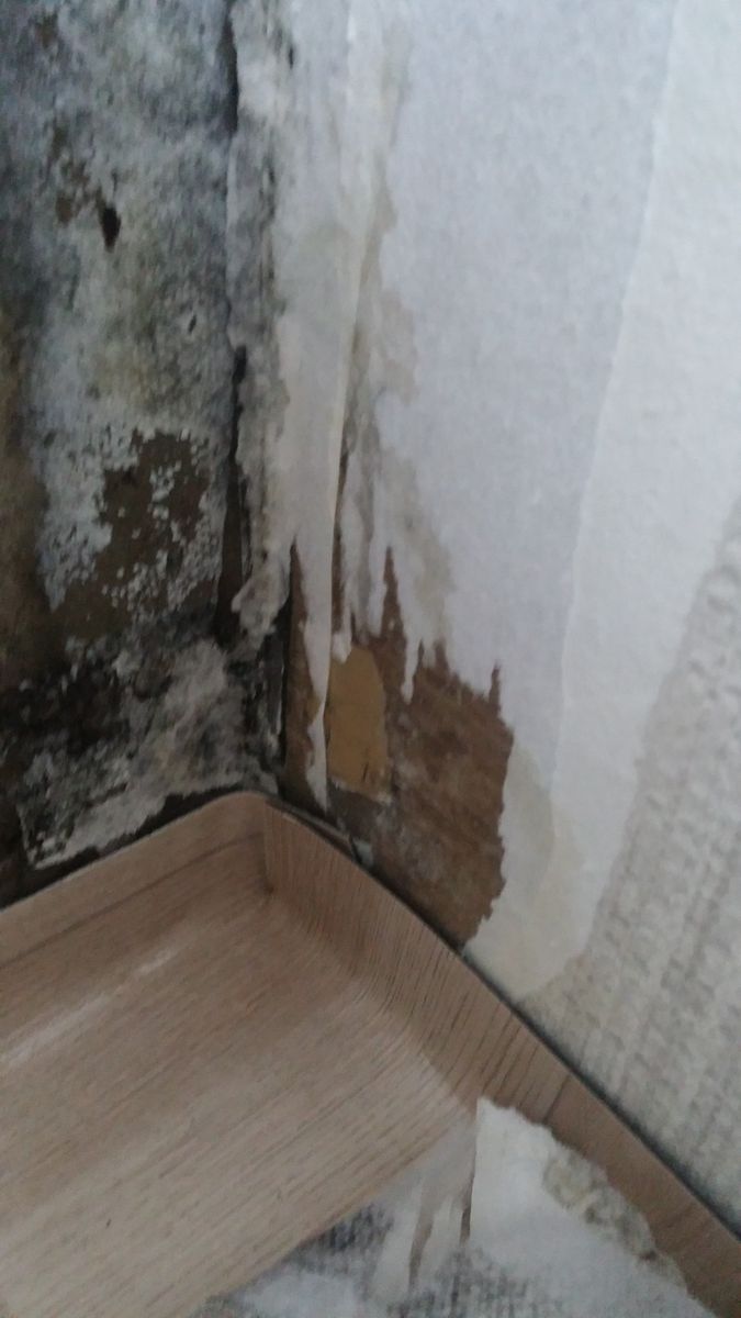 방2 : 여기도 1번방과 마찬가지로 계단쪽 벽면 모서리에서 부터 곰파이가 보이고 뜯어봤더니 벽이 젖어 있습니다. 바같쪽 벽면의 나무에도 곰팡이가 보입니다.