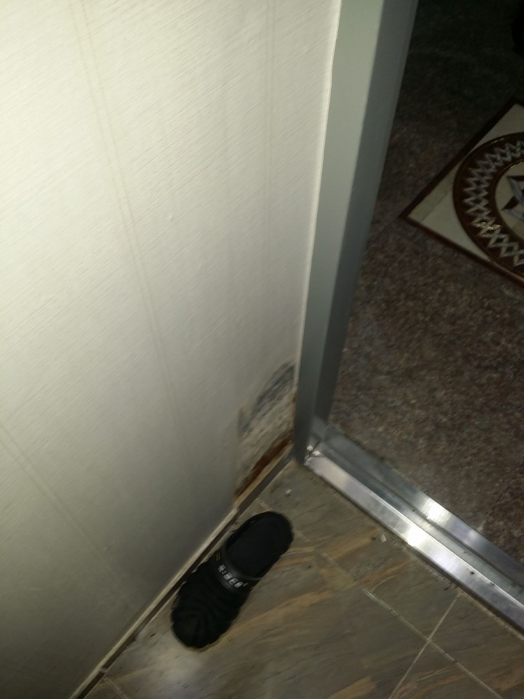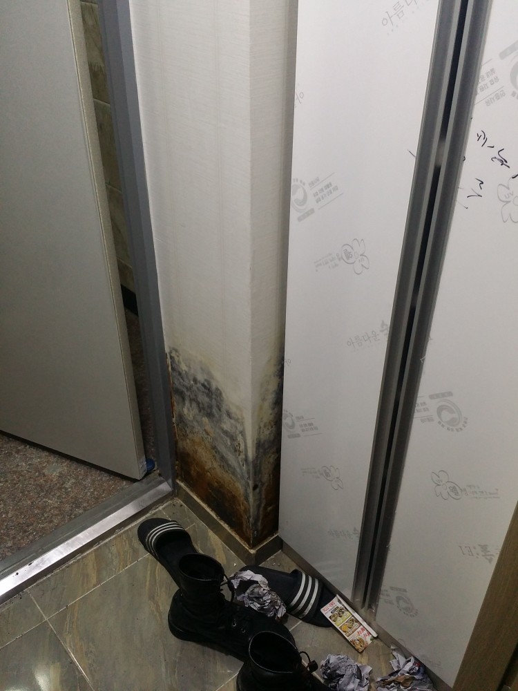 현관문(신발장) 쪽 벽 하단부에서 결로로