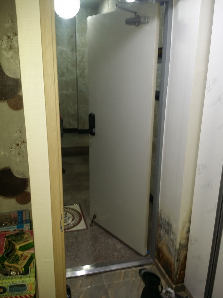 1) 방화문과 문프레임에 단열벽지를 붙이기