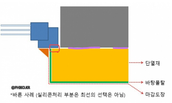 "단열재와 창틀 사이의 틈도 실리콘만 밀실하게 시공" 될 수 있습니다.
