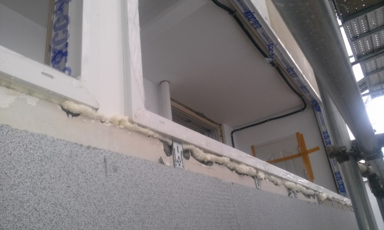 위의 사진에서 창호 고정용 철물도 다른 방법이 있었을 것이고 더불어 외부에 투습방수용 테이프의 시공이 없는 것이 아쉽고 이질 재료사이에 항상 들어가야 하는 팽창형 밴드가 보이지 않는 것도 아쉽습니다.
