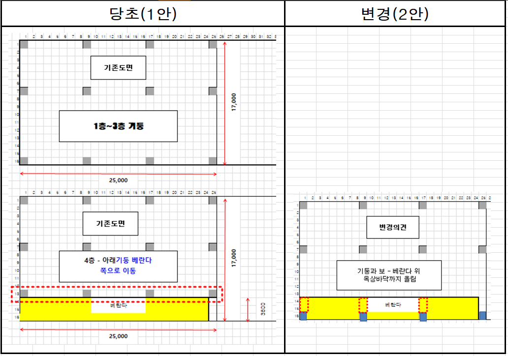 2. 변경의견 - 베란다에서 옥상바닥까지 기둥봐 보를 그대로 올리자는 의견