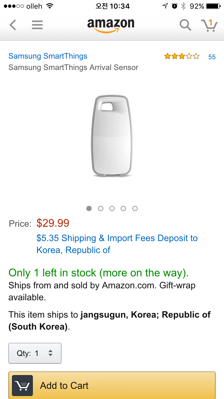 네번째는 제실센서에요. 스마트싱스에서 휴대폰의 지피에스를 이용해서 지오펜스로 제실여부와 함께 이용할 수 있는데요. 휴대폰이없어도 제실센서만 있어도됩니다.