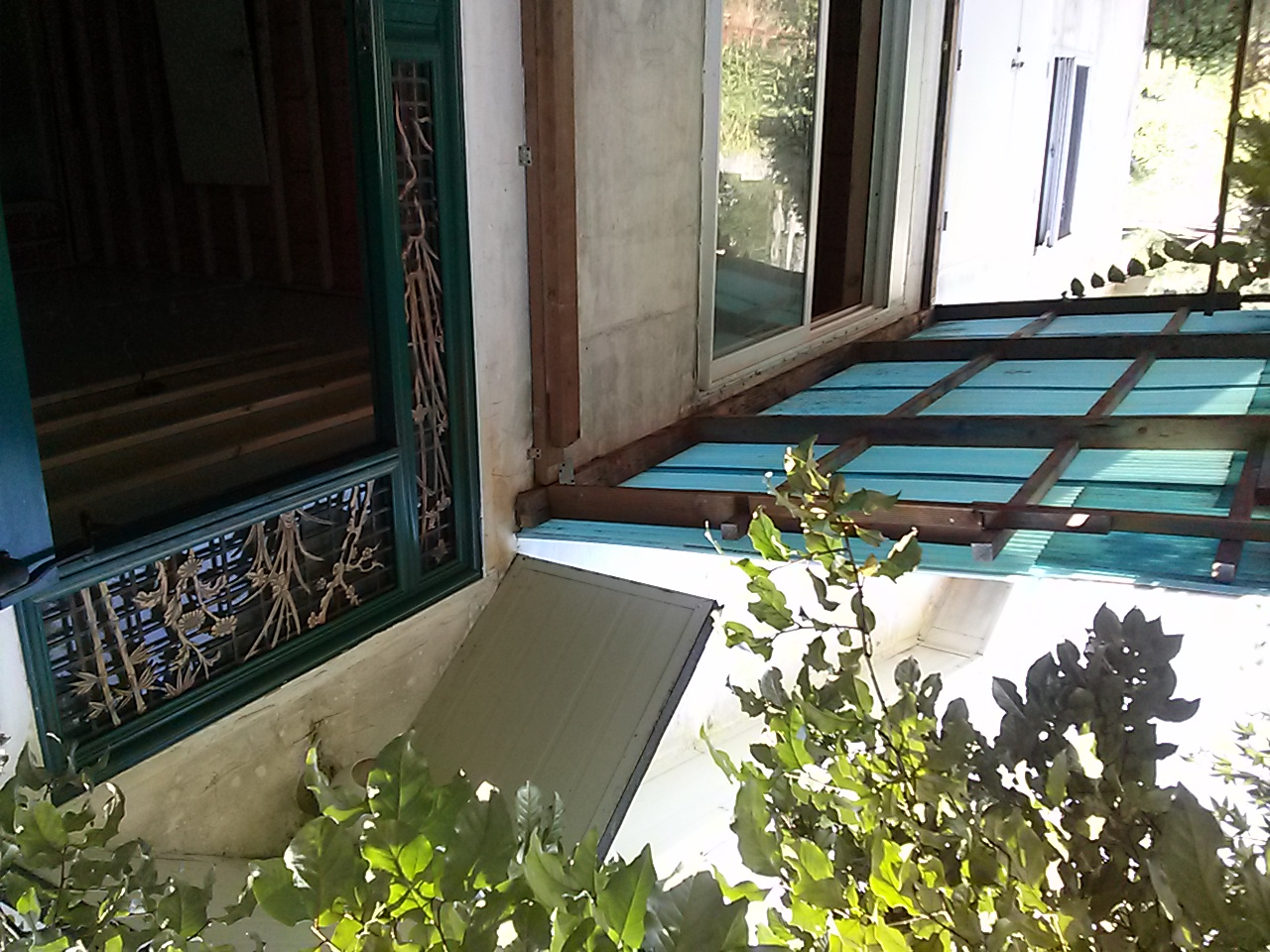 큰창이 바닥과 가까운 높이고 해당면 지붕 처마가 짧아 빗물이 떨어져서인지 바닥 방수를 위해 임시지붕 자체제작했더군요.