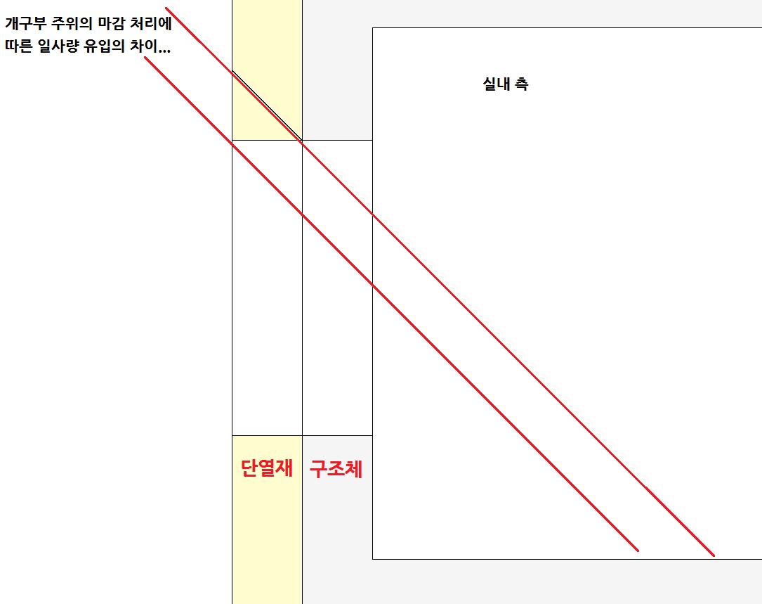 홍선생님 말씀에 '햇빛을 조금 더 받기 위한 방안으로 개구부를 사선으로 시공하고 ...'라는 부분인데요.