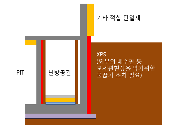 마지막으로 PIT랑 지하층이 만나는 벽체의 단열은 어떻게 하는것이 좋은가요?