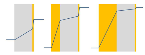 즉, 실내측의 열반사단열재로 인해, 양단열처럼 되어버리므로 외벽에 단열재가 붙어도 실내측 표면온도를 충분히 올리기 어렵기 때문에....아래 그림의 제일 오른쪽 만큼의 단열재가 충분히 들어가야, 실내측 표면온도를 안정적으로 이끌 수 있다는 뜻입니다.