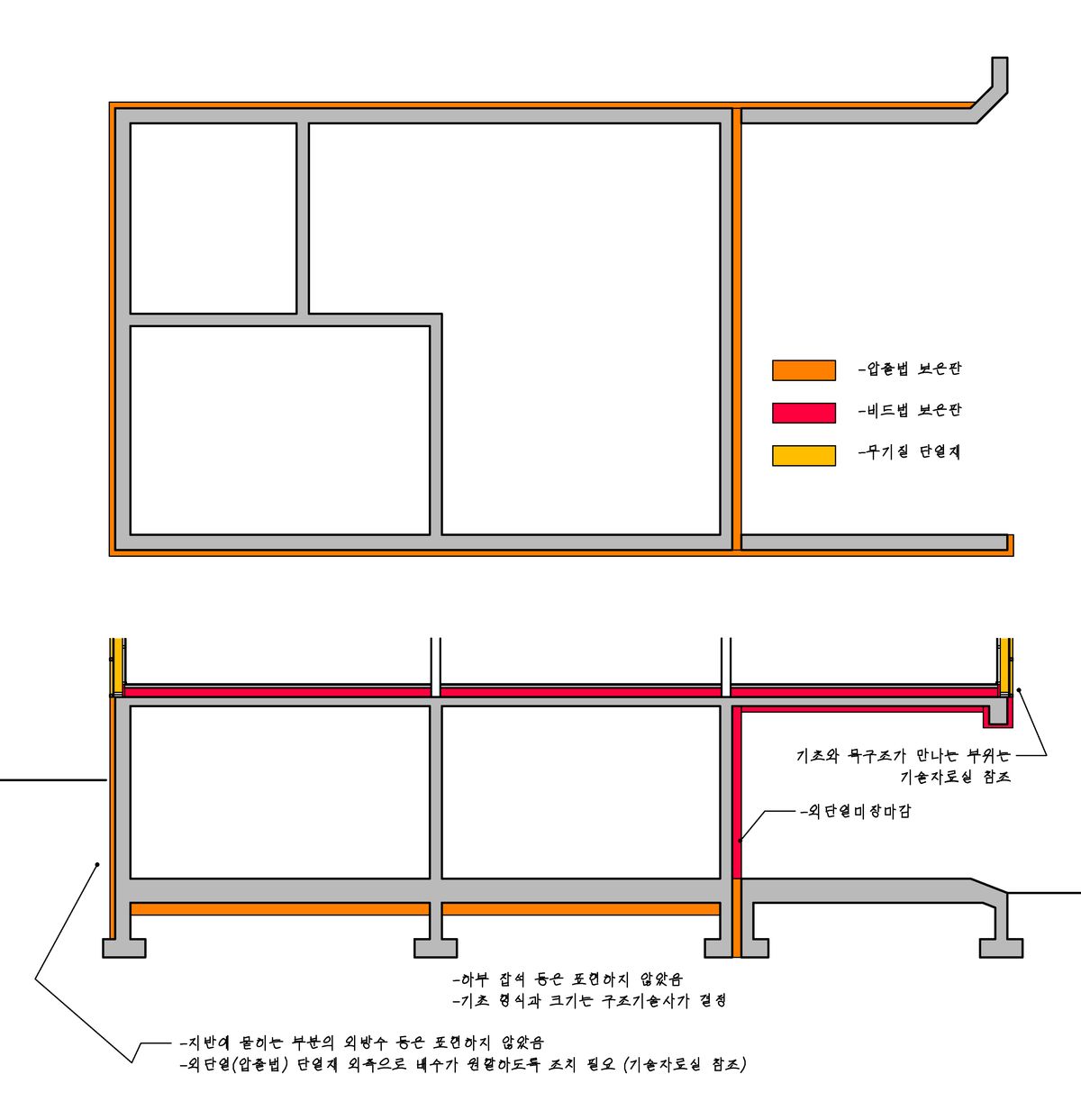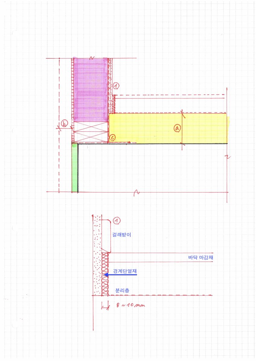 4. 경계단열재로 씨멘트 모르타르가 구조체로 유입되는 것은 아래의 스케치 처럼 막을 수도 있습니다.