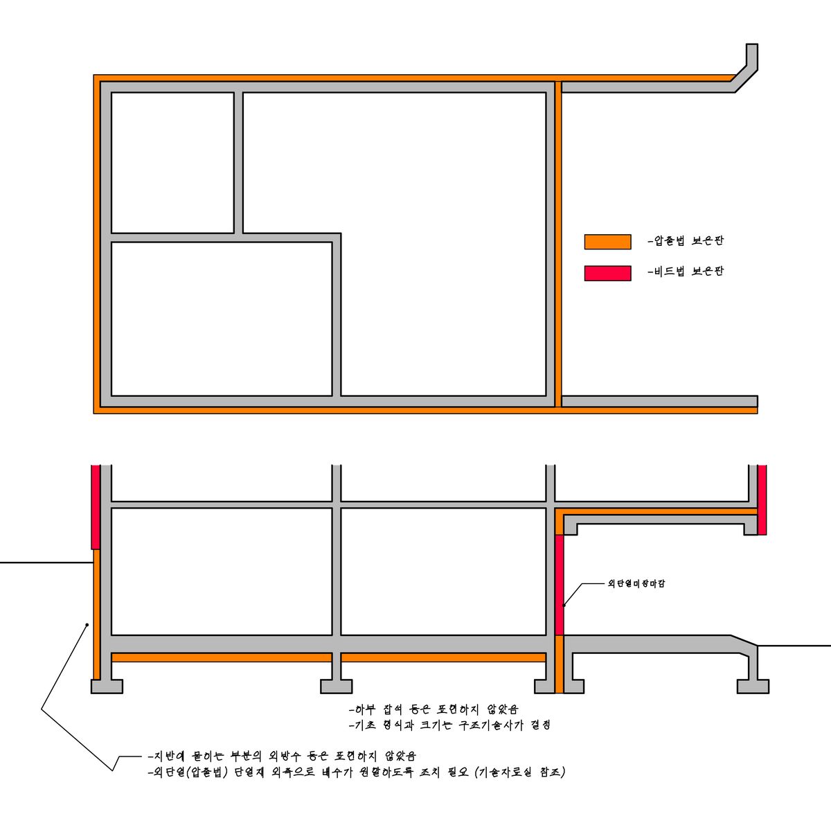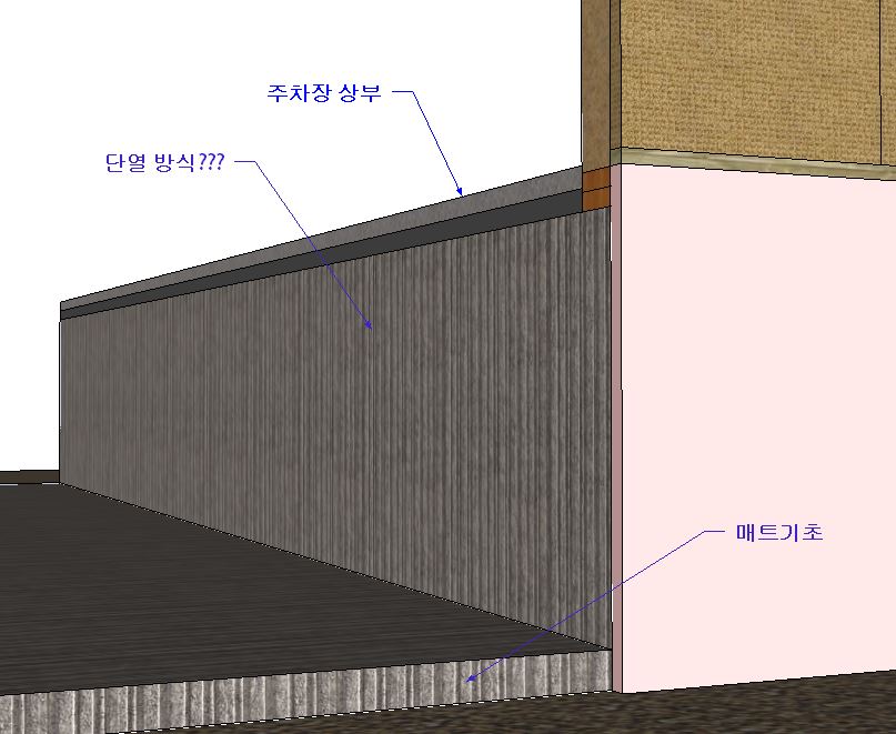 4. 스킵플로어 구조로 인한 의문점(2) : 주차박스와 나머지 매트 기초가 'L'자로 꺽이면서 생기는 콘크리트 벽체 부분 단열은 어떤 방식으로 해줘야 하는지요?