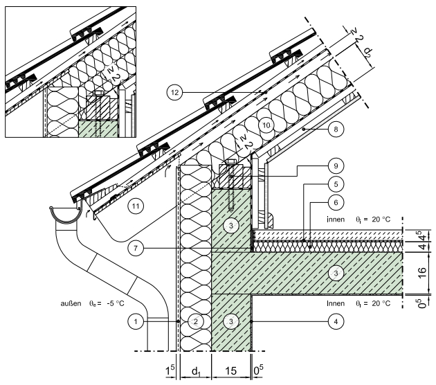이런 이유에서 협회에서 "지금까지 경험에서 가장 저렴한" 이라는 언급을 별도로 한 것입니다. 더 좋은 방법은 물론 있습니다. 그것 중의 하나가 하부의 스케치입니다. 이걸 보면 시공사에선 좋은 소리를 하지 않죠! 아예 열교를 없애는 방법도 있는데 이런 경우는 고정 나사의 길이가 400mm 이상이 필요합니다. 점점 어려워지지요. 그런 여러 이유에서 줄이고 줄이고 줄여서 표현한 겁니다.
