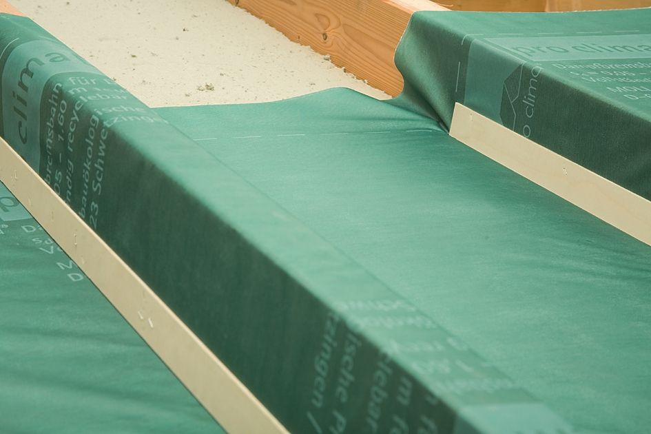 우리의 경우는 투습방수지라고 보시면 됩니다. 그러고 서까래도 목재이지만 우리의 경우는 각 파이프입니다. 보여드리는 것은 서까래 측면의 얇은 목재를 통해 투습방수지를 고정하는 방법을 이해하기 편하시라고 올리는 겁니다.