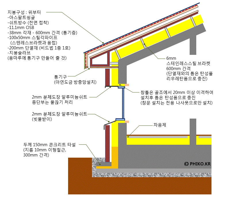 (창호와 벽체가 만나는 부분도 분명 문제가 될 터이지만, 더 상세한 도면이 없어 판단하지 않았습니다.)
