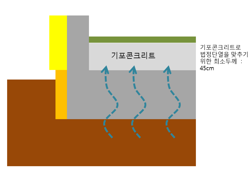 또한 이 모든 것을 떠나서 기포콘크리트로 법정 바닥 단열 규정을 맞추려면 45cm 두께가 필요하기 때문에 애당초 불가능한 제안입니다.
