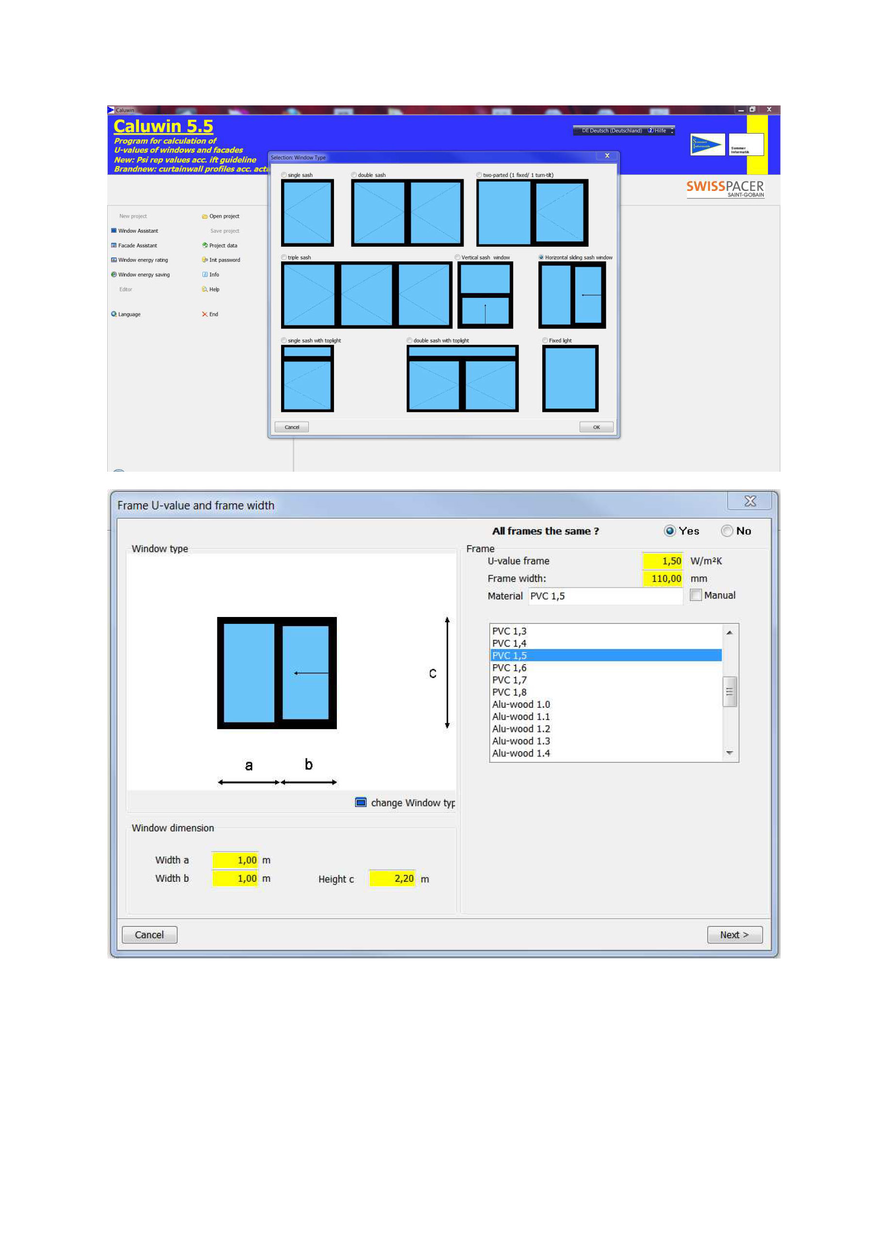 Uf (PVC) = 1,5 W/m²K