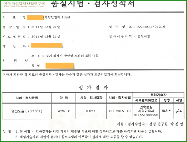 설령 시험성적서에 의해 열전도율이 0.027이라면 압출 1호 열전도율과 같다는거고