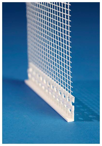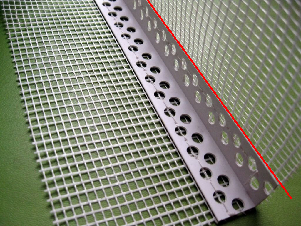 만약 "외단열전문시공팀"이 처음 보시는 거라 한다면.. 이 제품대신에 일반적 모서리보호재(코너비드)를 아래 사진의 붉은색 부분을 잘라서 써도 됩니다. (처음엔 모서리보호재를 잘라쓰다가 전용제품으로 발전한 경우입니다.)