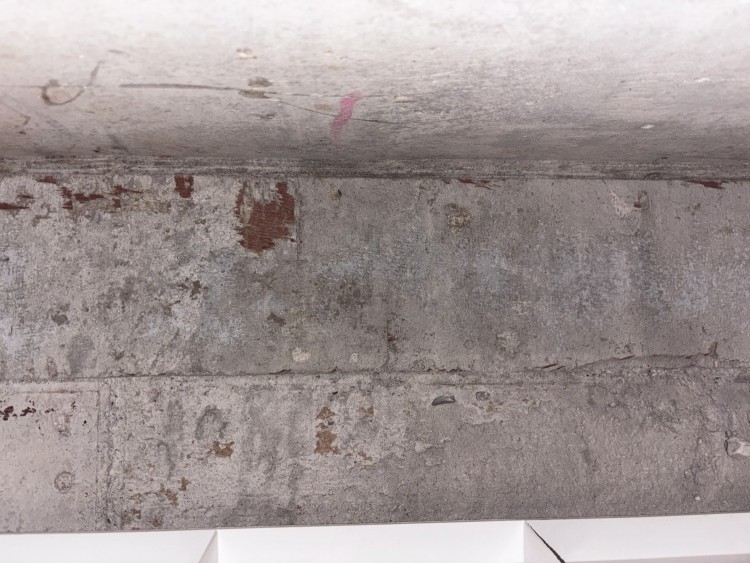 거푸집을 해체할 때 합판이 딱 떨어지지 않은걸로 보입니다.
