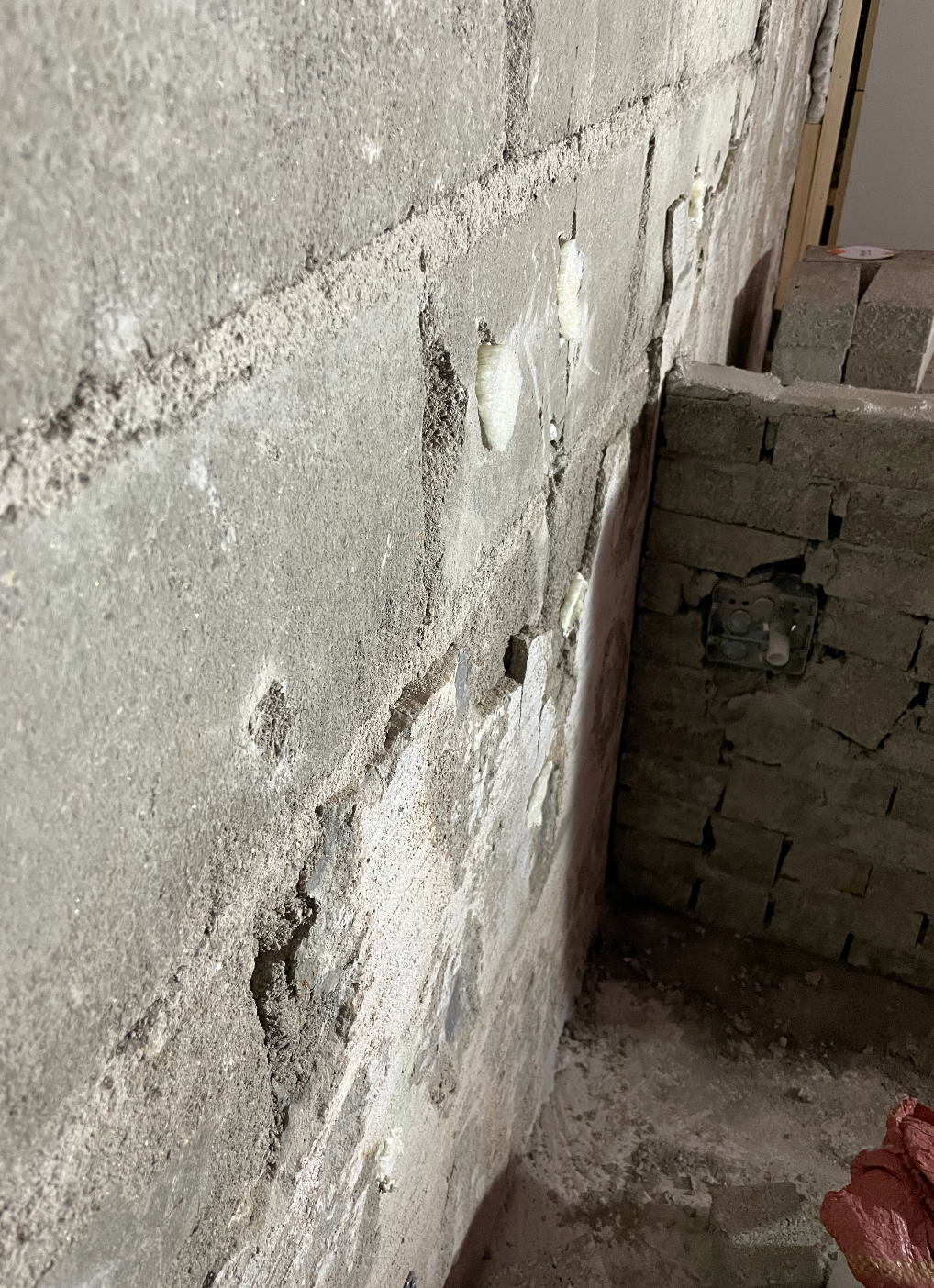 <타일 철거하면서 미장면이 함께 뜯긴건지 벽돌이 드러나버린 면도 있고 벽체가 난리가 났습니다>