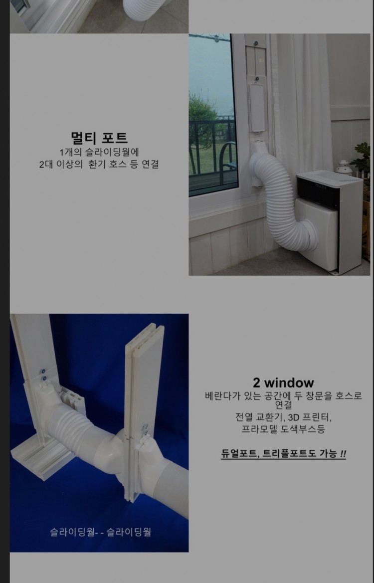 공기청정기에 호스를 달아 외부와 연결하는 방식인데