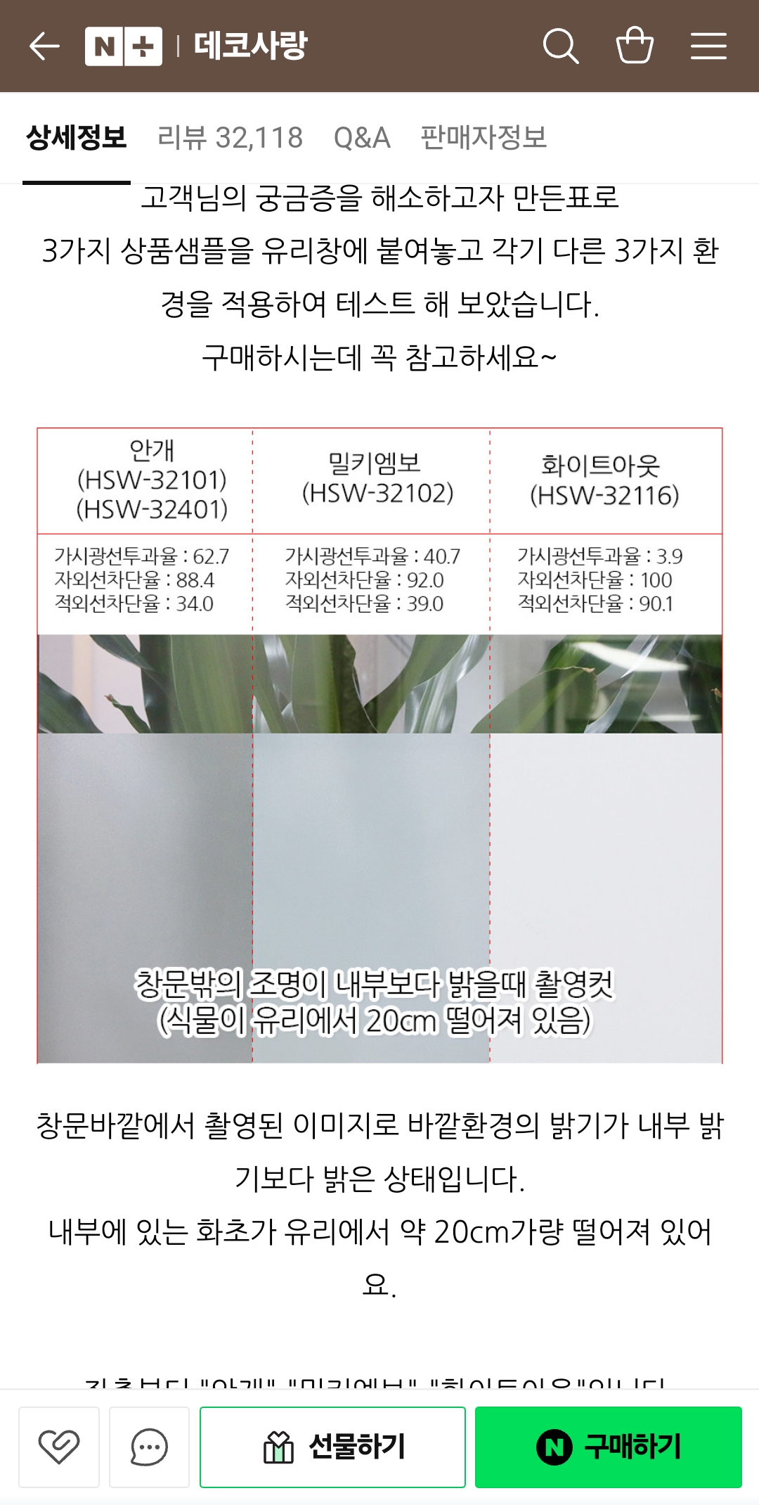 답변 감사합니다. 한가지 더 질문 드리자면 사진 속 투과율 차단율 상관없이 3가지중 아무거나 해도 상관없을까요?