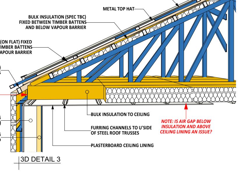 단열층 상부에 배관이 있는 것도 좋지 않고, 그 배관이 기밀층을 관통하는 부위의 처리도 매우 까다롭습니다.