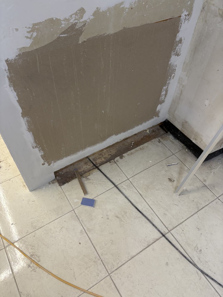 목재로된 나무 가벽 아래에 있어 뭔가로 덮어놓기도 애매한 상황입니다