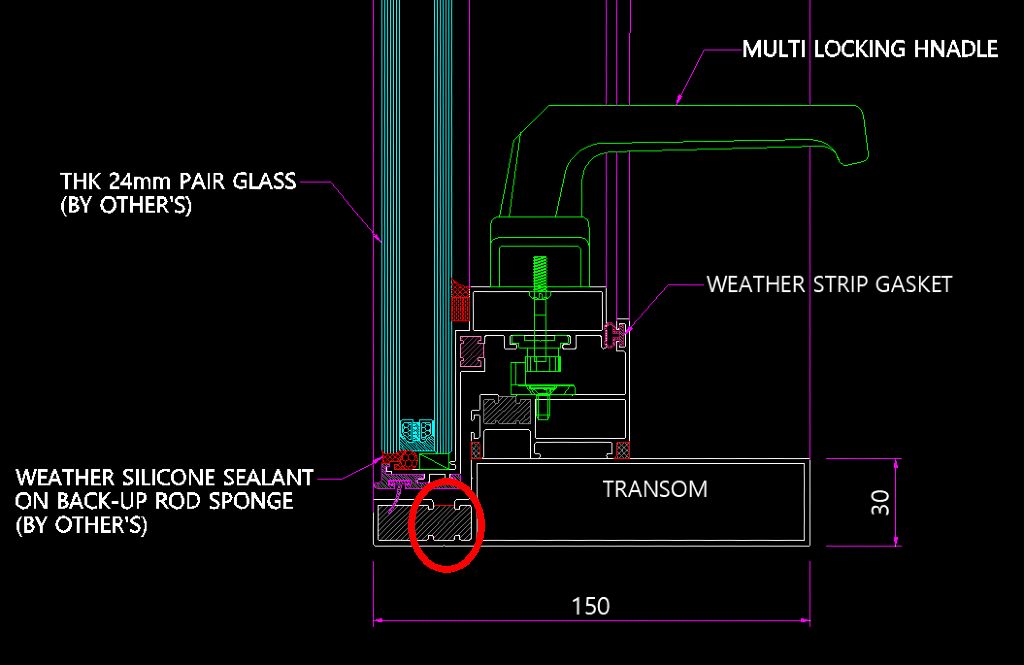 2. 지금 도면으로는 안됩니다. 이러 류의 창호는 아래 표시된 부분이 금속절단 부위인데, 하부는 끊어지는 않고 있습니다. 도면에서만 그렇고 실제로는 끊어져서 납품될 확률이 높긴 하나, 확인은 해보셔야 합니다.