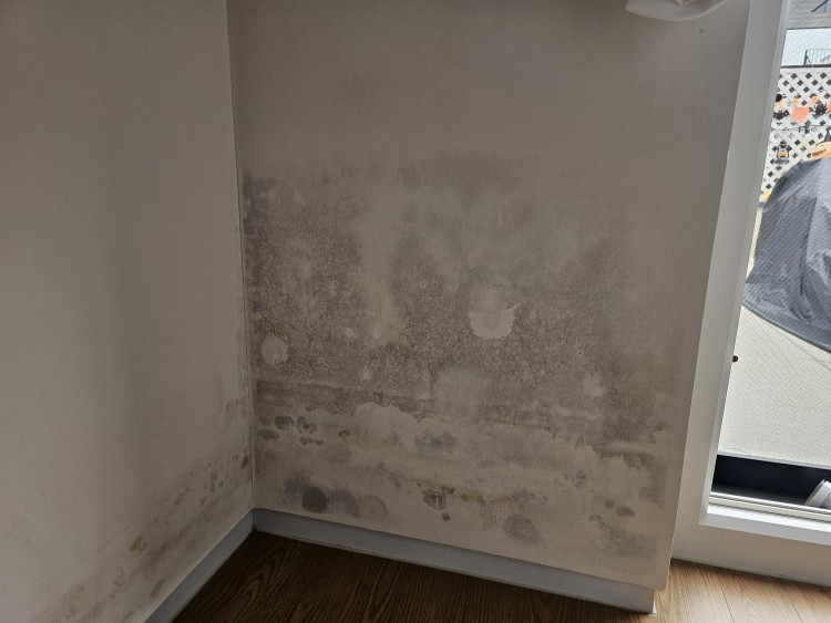 바닥인접 외벽이 항상 축축하게 젖어있는 상황입니다.