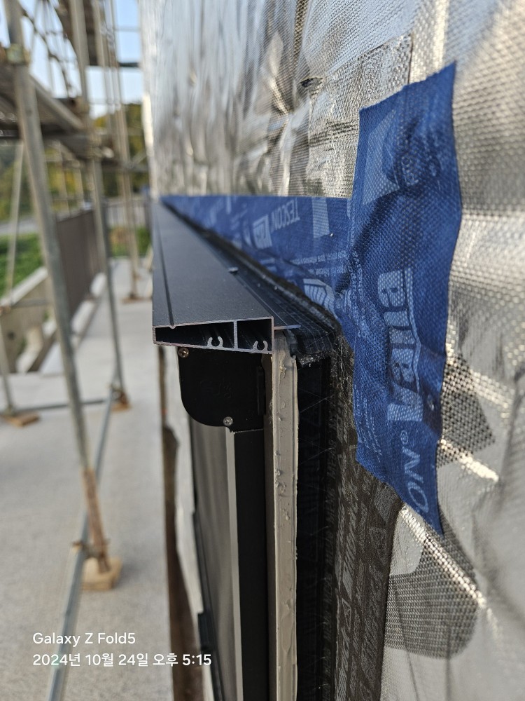이미 창틀과 투습방수지 사이에 방수조치를 했기에, 이 후레싱은 모양을 위한 설치로 보는 것이 맞을 것 같습니다.