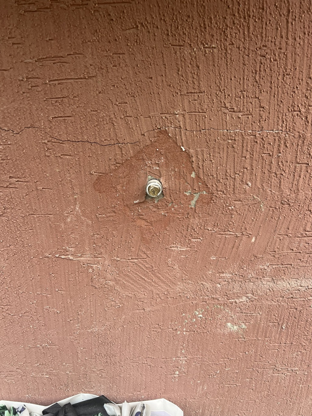 사진으로 봐서는 서비스 니플이 있은 듯 싶습니다. 니플을 빼고 외단열미장마감 안쪽에서 메꾼 다음 우래탄 폼으로 메꾼 후 마감보수를 하는 방안을 추천드립니다.